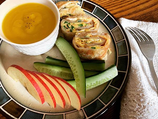 女兒六年級了,高年級的孩子能為學校貢獻多一點的服務,每隔週需提早到校當糾察隊,因此來不及在家用早餐,為了滿足女兒希望我幫她帶便當的願望,偶爾的早餐日我會準備豐盛多樣的形式,裝在她的餐盒裡。