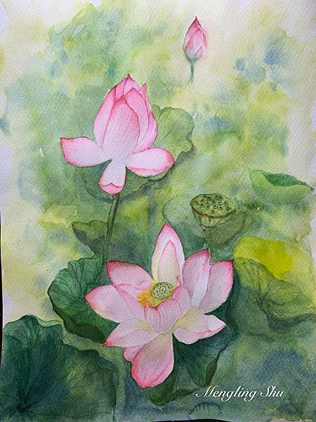 終於把去觀音所拍的荷花構圖成自己滿意的樣子,畫下來了。荷花清新脫俗,出淤泥而不染。畫畫的當下,心情平靜如艷陽下仍靜靜綻放的夏荷。